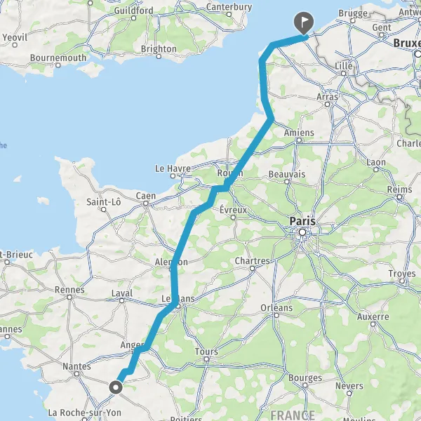 Prendre à droite et rejoindre A11 E60 E501. Continuer sur 87 kilomètres