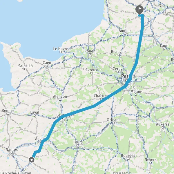 Prendre à droite et rejoindre A11 E60 E501. Continuer sur 234 kilomètres