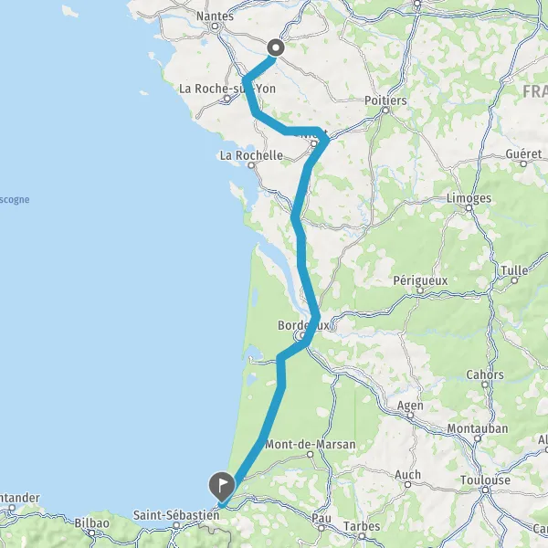 Prendre à droite et rejoindre A63. Continuer sur 172 kilomètres