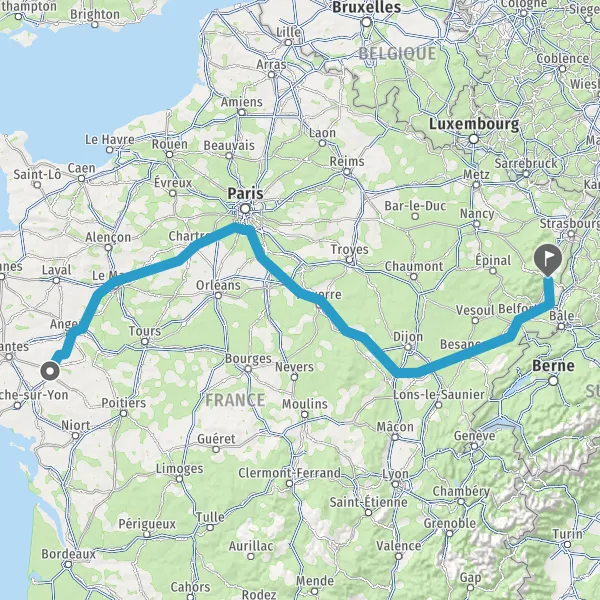 Prendre à droite et rejoindre A36. Continuer sur 225 kilomètres