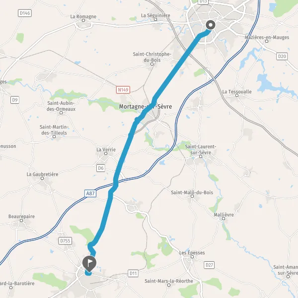 A87NiortLa Roche-sur-YonLa RochellePoitiersMortagne-sur-SèvreLes Herbiers