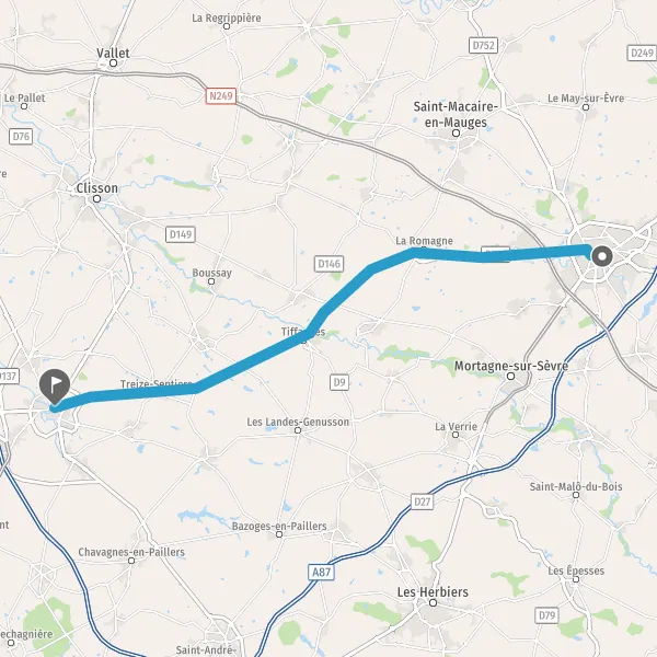Au rond-point, prendre la 1ère sortie sur D753 (Avenue de Nantes) et continuer sur 3,1 kilomètres
