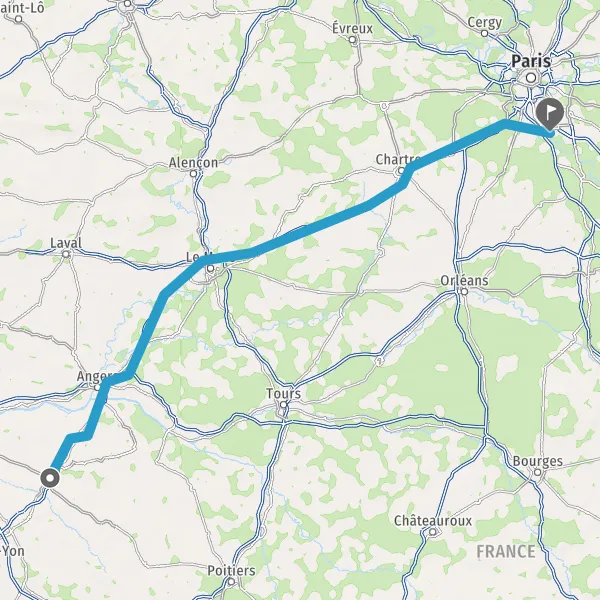 Prendre à droite et rejoindre A11 E60 E501. Continuer sur 234 kilomètres