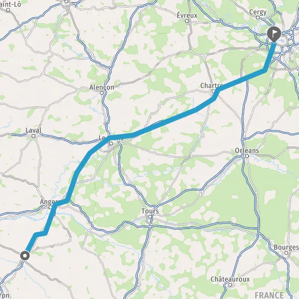 Prendre à droite et rejoindre A11 E60 E501. Continuer sur 234 kilomètres