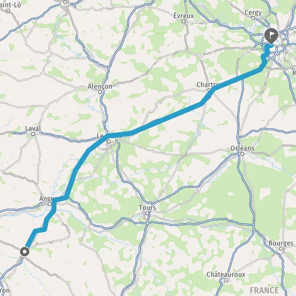 Prendre à droite et rejoindre A11 E60 E501. Continuer sur 234 kilomètres