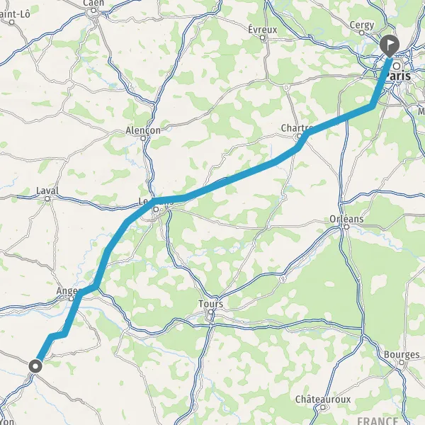 Prendre à droite et rejoindre A11 E60 E501. Continuer sur 234 kilomètres