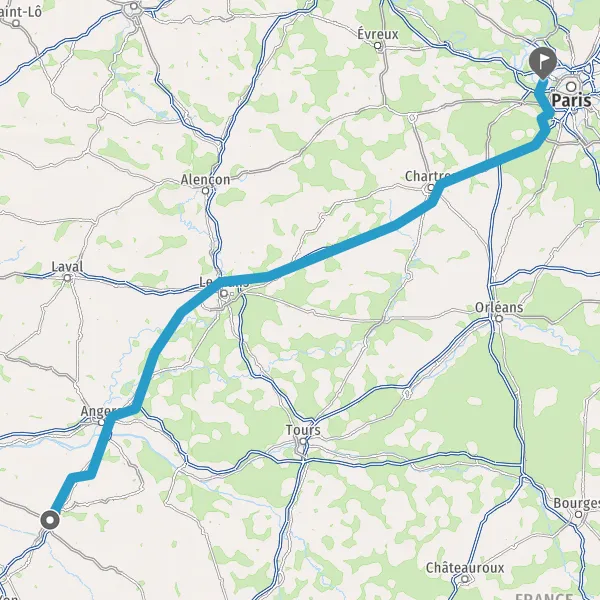 Prendre à droite et rejoindre A11 E60 E501. Continuer sur 234 kilomètres