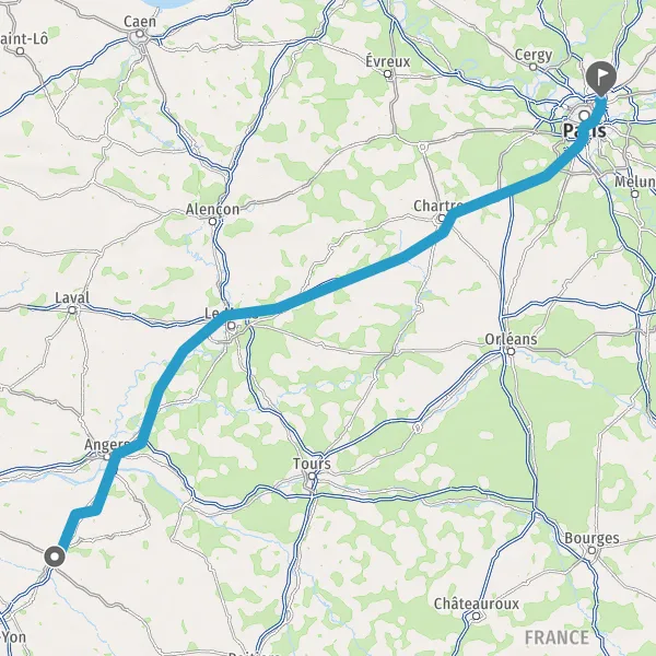 Prendre à droite et rejoindre A11 E60 E501. Continuer sur 234 kilomètres