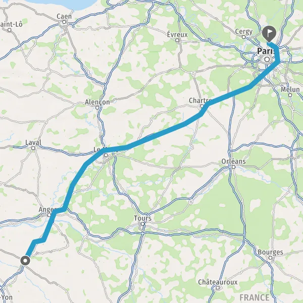 Prendre à droite et rejoindre A11 E60 E501. Continuer sur 234 kilomètres