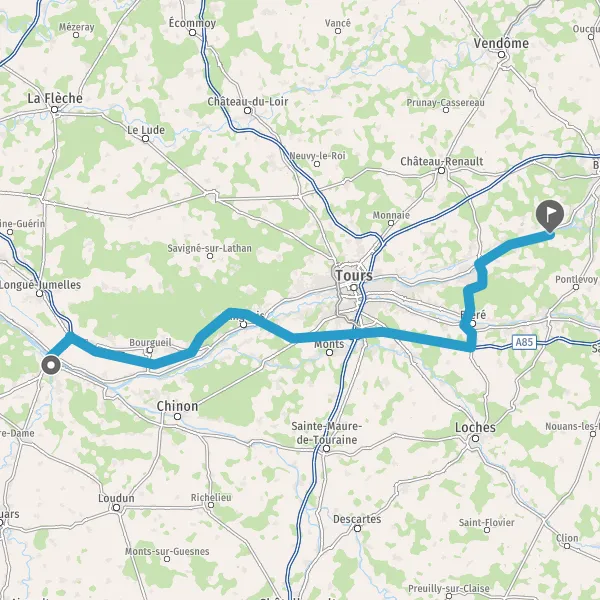Continuer et rejoindre A85 E60. Continuer sur 85 kilomètres
