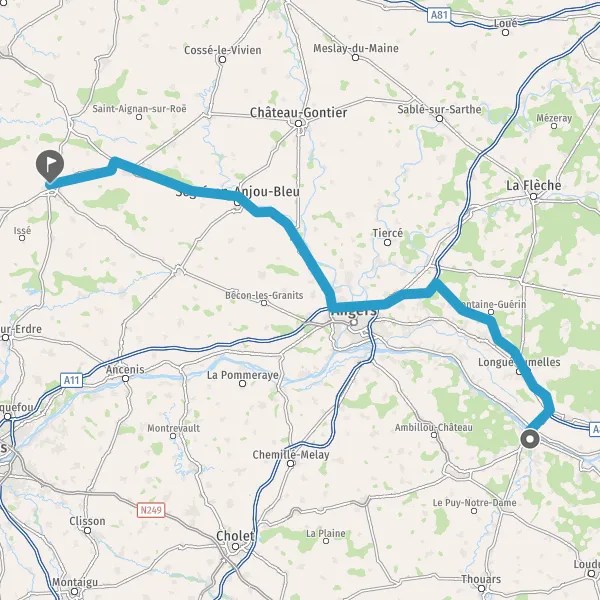 Continuer et rejoindre A85 E60. Continuer sur 36 kilomètres