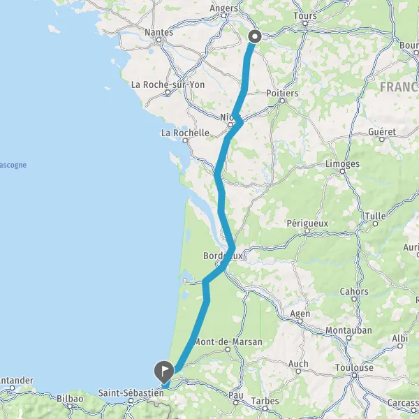 Prendre à droite et rejoindre A63. Continuer sur 172 kilomètres