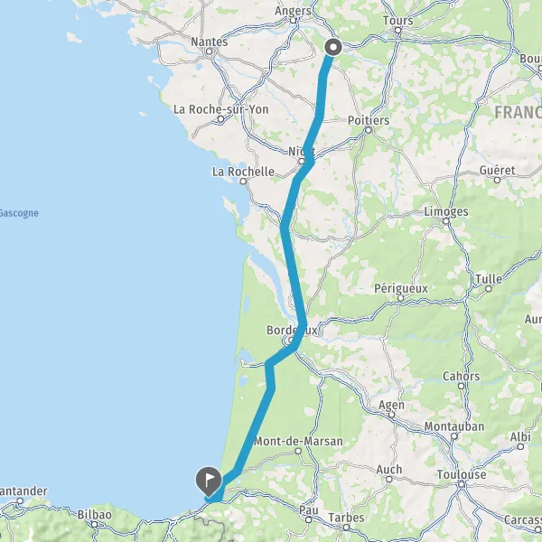 Prendre à droite et rejoindre A63. Continuer sur 183 kilomètres