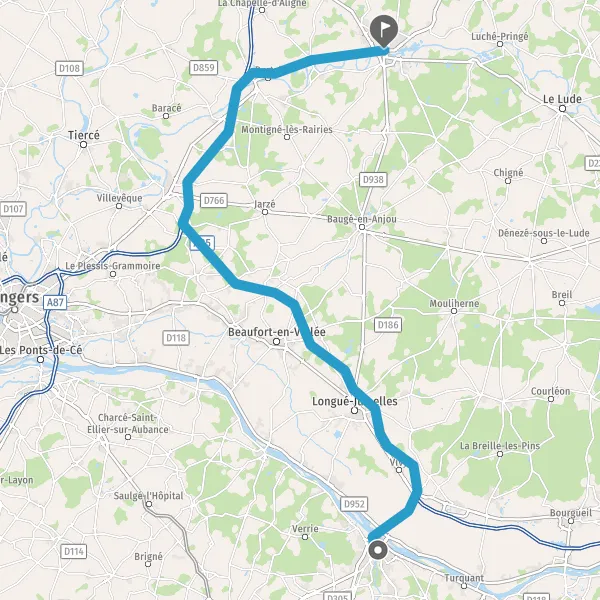 Au rond-point, prendre la 2ème sortie sur D938 (Route de la Flèche) et continuer sur 7,9 kilomètres