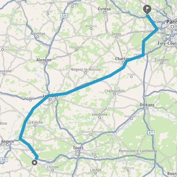 Prendre à droite et rejoindre A11 E501. Continuer sur 212 kilomètres