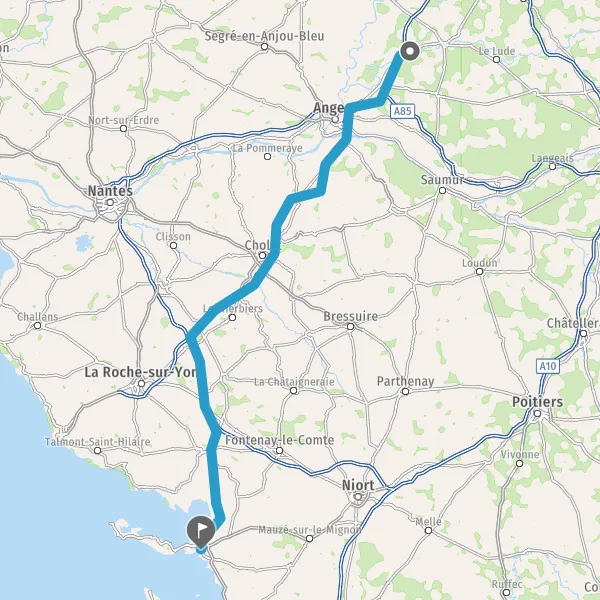Prendre à gauche et rejoindre A83 E3. Continuer sur 33 kilomètres