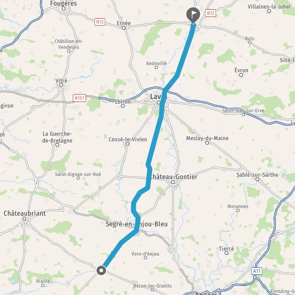Tourner à droite sur D114 (Route d'Ampoigné) et continuer sur 3,3 kilomètres