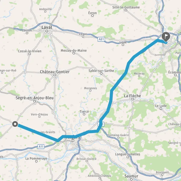 Au rond-point, prendre la 3ème sortie sur Route d'Angers et continuer sur 900 mètres