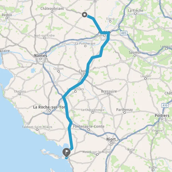 Prendre à gauche et rejoindre A83 E3. Continuer sur 33 kilomètres
