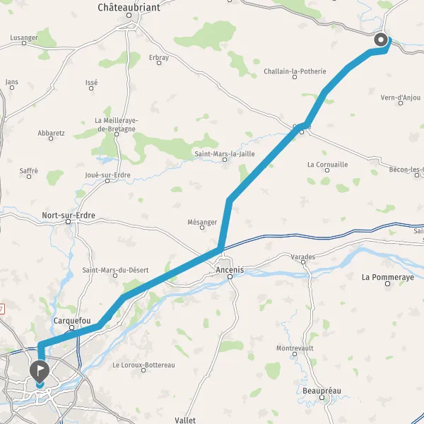 Tourner légèrement à droite sur D923 (Route de Nantes) et continuer sur 13 kilomètres