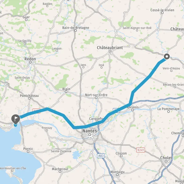 Tourner légèrement à droite sur D923 (Route de Nantes) et continuer sur 13 kilomètres
