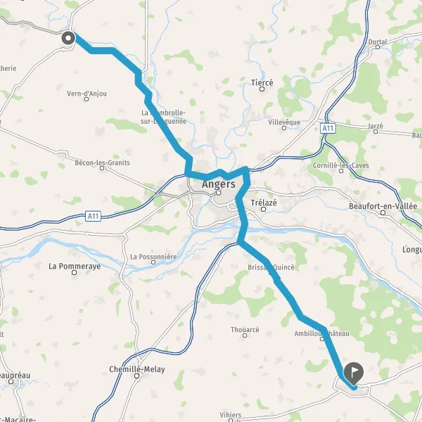 Prendre à droite et rejoindre A11 E60. Continuer sur 9,5 kilomètres
