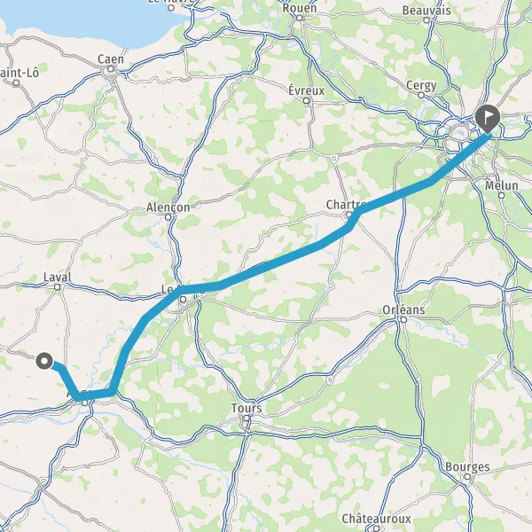 Prendre à droite et rejoindre A11 E60. Continuer sur 243 kilomètres