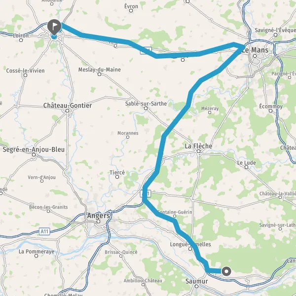 Prendre à droite et rejoindre A11 E501. Continuer sur 70 kilomètres