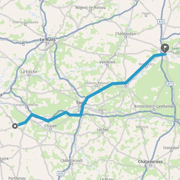 Tourner légèrement à droite sur D952 (Route de Tours) et continuer sur 9 kilomètres