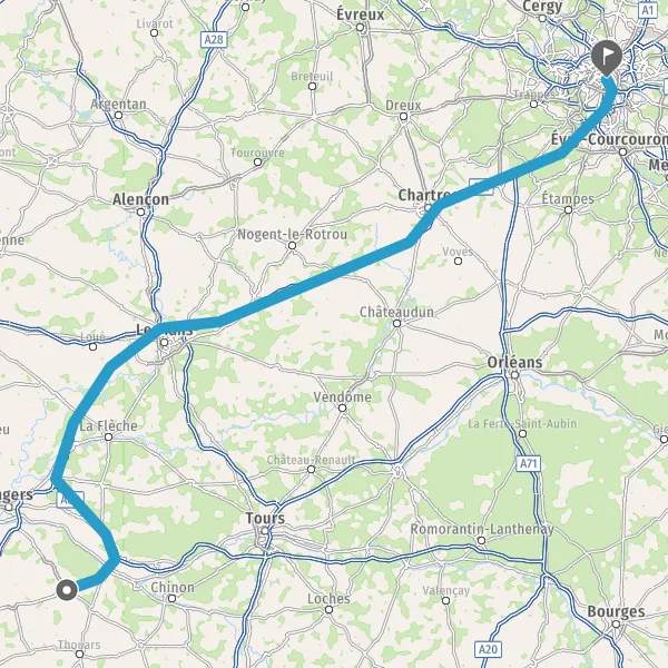 Trajet de Doué-en-Anjou (49700) à Paris (75000) en voiture