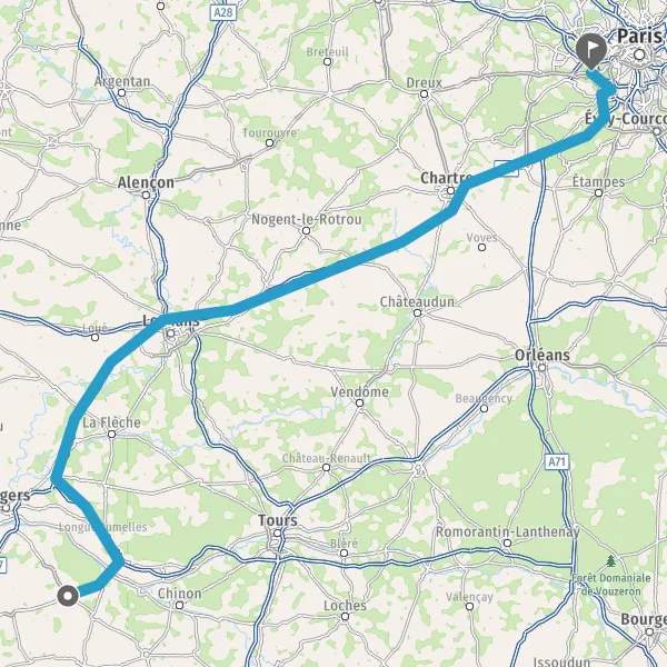 Prendre à droite et rejoindre A11 E501. Continuer sur 220 kilomètres