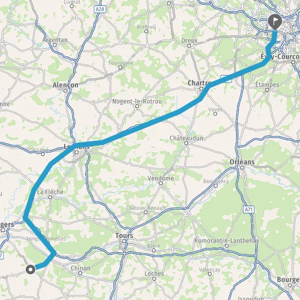Prendre à droite et rejoindre A11 E501. Continuer sur 220 kilomètres