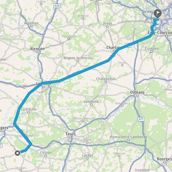 Prendre à droite et rejoindre A11 E501. Continuer sur 220 kilomètres