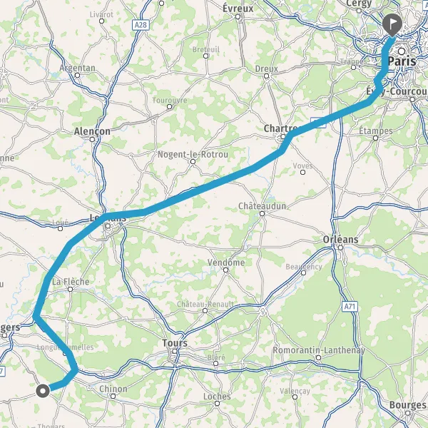Prendre à droite et rejoindre A11 E501. Continuer sur 220 kilomètres