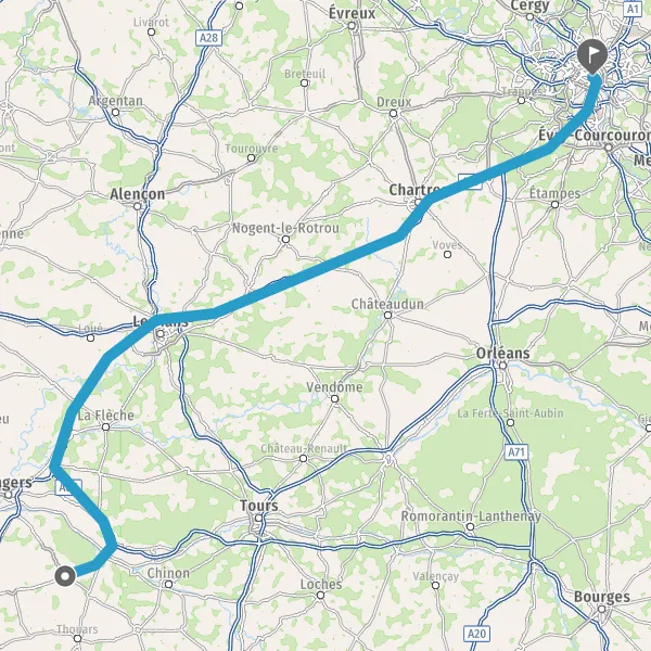 Prendre à droite et rejoindre A11 E501. Continuer sur 220 kilomètres