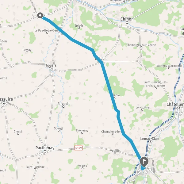 Au rond-point, prendre la 4ème sortie sur Rue de Saumur et continuer sur 3,1 kilomètres