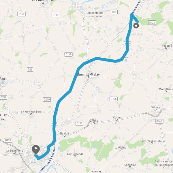 Prendre à gauche et rejoindre A87. Continuer sur 38 kilomètres