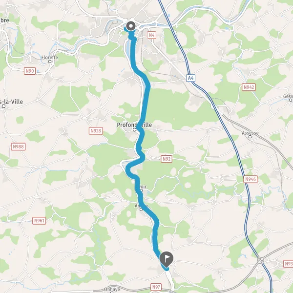 Tourner à droite sur N947 (Rue de Dave) et continuer sur 1,2 kilomètre