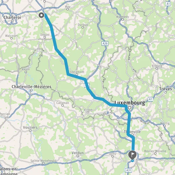 Prendre à droite et rejoindre A4 E411. Continuer sur 133 kilomètres