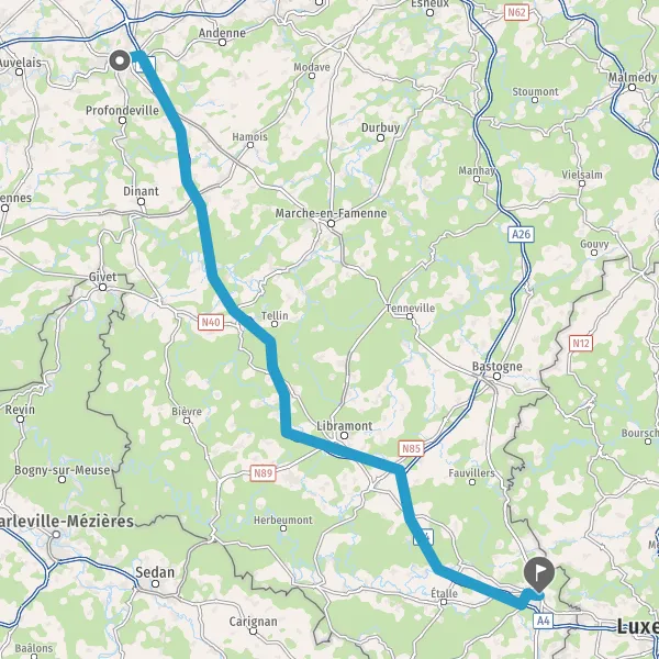 Prendre à droite et rejoindre A4 E411. Continuer sur 121 kilomètres