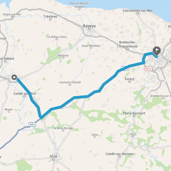 N174RennesLe Mont-Saint-MichelCaenVilledieu-les-PoêlesVireTorigni-sur-VireCondé-sur-Vire