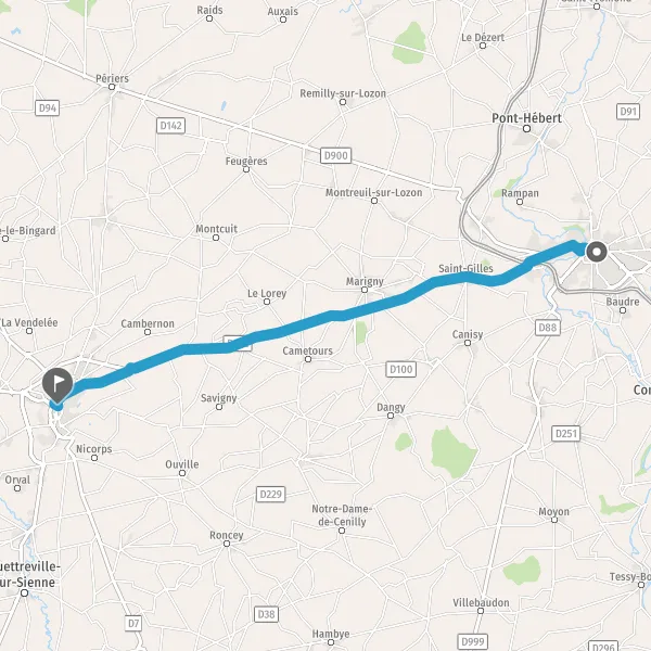 Au rond-point, prendre la 2ème sortie sur D900e3 (Route de Coutances) et continuer sur 300 mètres