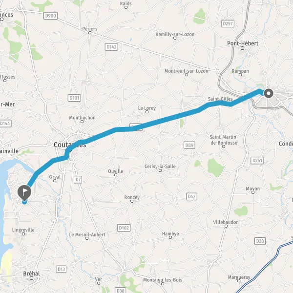 Au rond-point, prendre la 2ème sortie sur D972 (Route de Coutances) et continuer sur 2,6 kilomètres