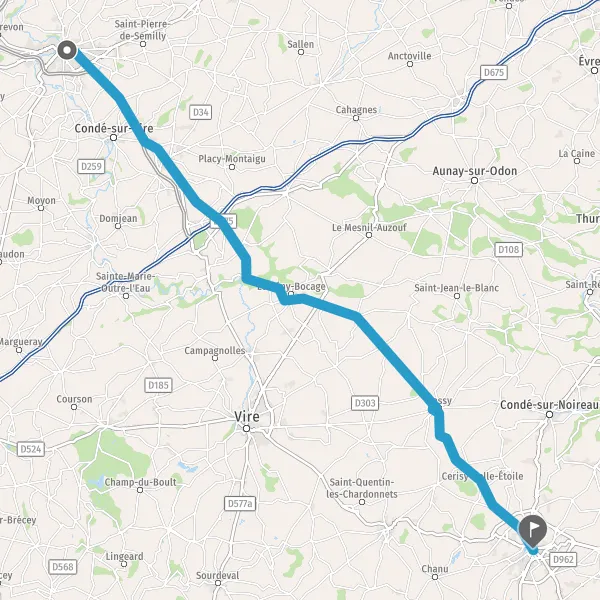 N174RennesLe Mont-Saint-MichelCaenVilledieu-les-PoêlesVireTorigni-sur-VireCondé-sur-Vire