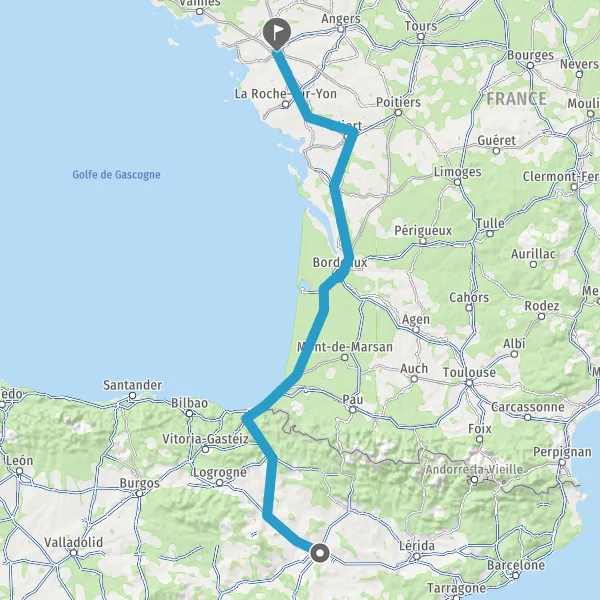 Payer 2,00 € (Péage Biriatou) Autoroute de la Côte Basque Payer 2,80 € (Péage La Negresse) Payer 4,30 € (Péage Benesse) Payer 4,40 € (Péage Castets) Payer 4,40 € (Péage Saugnacq-et-Muret) 281 km