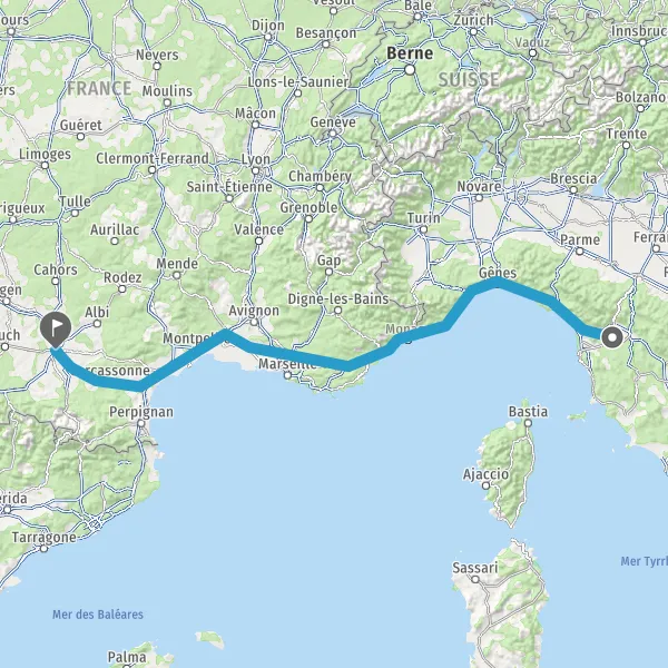 Payer 3,40 € (Péage La Turbie Pleine Voie) Payer 1,50 € (Péage Saint Isidore Pleine Voie) Payer 3,50 € (Péage Antibes Pleine Voie nord) Prendre un ticket (Péage Capitou) Payer 17,70 € (Péage La Barque) 355 km