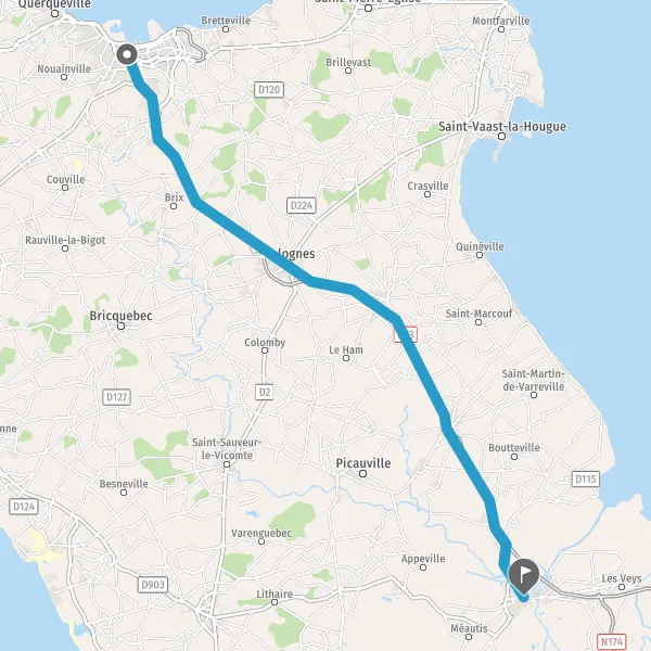 Au rond-point, prendre la 1ère sortie sur D902 (Route de Montebourg) et continuer sur 750 mètres