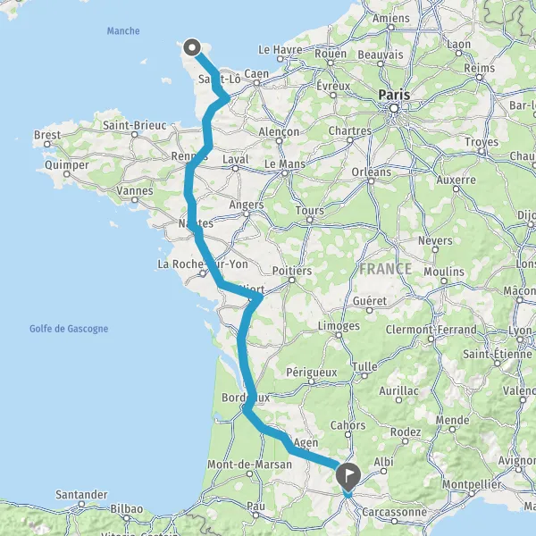 Trajet de Cherbourg-Octeville à Toulouse (31000) en voiture
