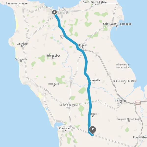 Au rond-point, prendre la 1ère sortie sur D24 (Rue de Périers) et continuer sur 11 kilomètres