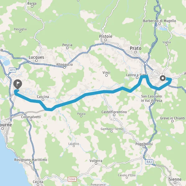 Prendre à droite et rejoindre Strada Grande Comunicazione Firenze-Pisa-Livorno. Continuer sur 55 kilomètres